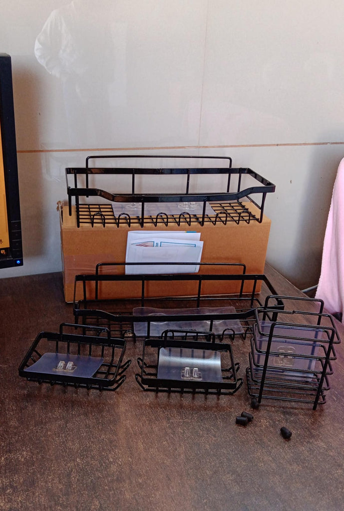 Shower Shelf, No Drilling, Pack of 5 Shower Shelves, No Drilling, Black with Hooks, Shower Shelf, 5 Adhesives, Metal Shower Basket, Bathroom Shelf for Bathroom Organiser for Bathroom Storage & Kitchen (5 Pc Combo)