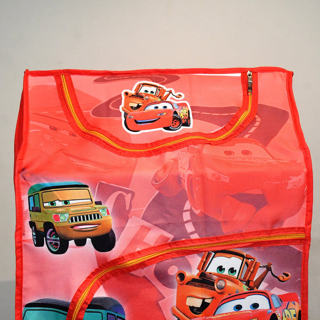 Multi Purpose Foldable Baby Wardrobe / Toy Box 5 Shelves Cartoon Printed, Red, Hut Shaped (Plastic Structure and Non - Woven Fabric Cloth Shelf)