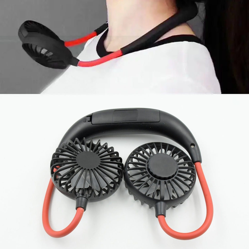 0867 Hand Free Personal Fan - Portable USB Battery Rechargeable With Battery Compartment Mini Fan - Headphone Design Wearable Neckband Fan Necklace Fan Cooler Fan for Home, Sport, Camping, Beach, Travel, Office (Battery Not Included)