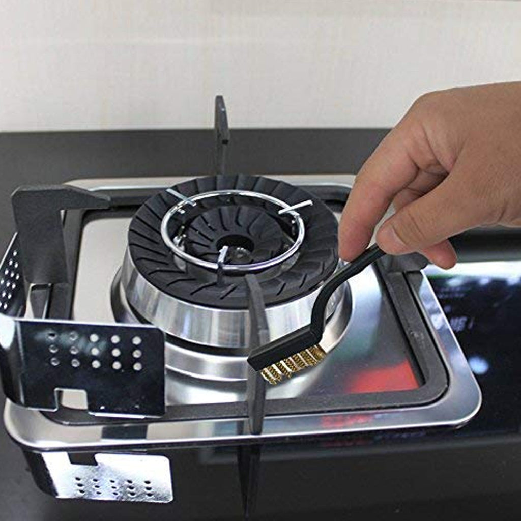 pc Mini Wire Brush Set Brass Nylon Stainless Steel Bristles Household Cleaning Brush for Gas Stove, Smoke Machine Tool Burner Tiles Tap Rust Removal Welding Slag Dirt & Paint Scrubbing (3 Pcs Set)
