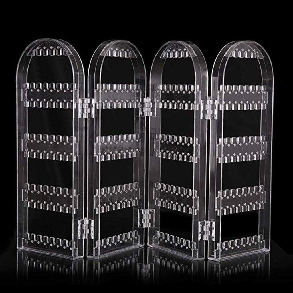 Acrylic Earrings Holder for Women, 4 Doors Foldable Screen Necklace Display Rack, Hanging Jewelry Organizer Double Sided Stand Display, Clear (1 Set)
